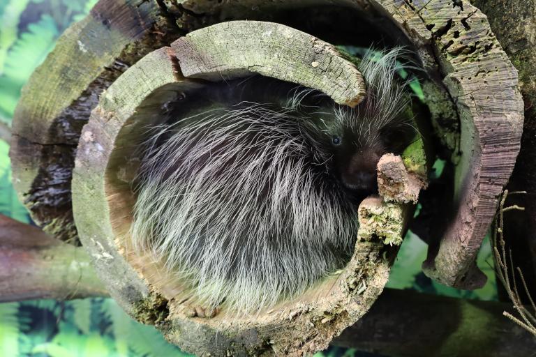 Als guter Kletterer verbringt der Urson einen Großteil seines Lebens auf Bäumen. Hier findet der nachtaktive Nager ausreichend Futter, Schutz vor Feinden und auch einen Schlafplatz.